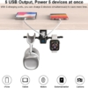 HORUMP Headphone Stand with 5 Port USB Charger, Under Desk Headset Hook Holder Hanger Mount with USB Charging Station and iWatch Stand Smart Watch Charging Dock Dual Earphone Hanger Hook